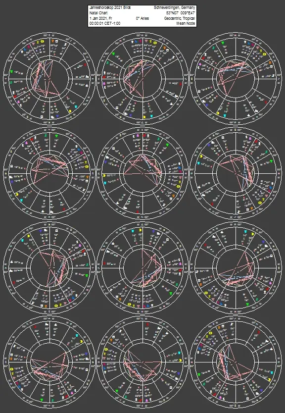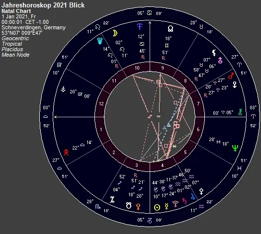 Hier sehen Sie das Jahreshoroskop berechnet auf 00:00:01 am 1.1.2021